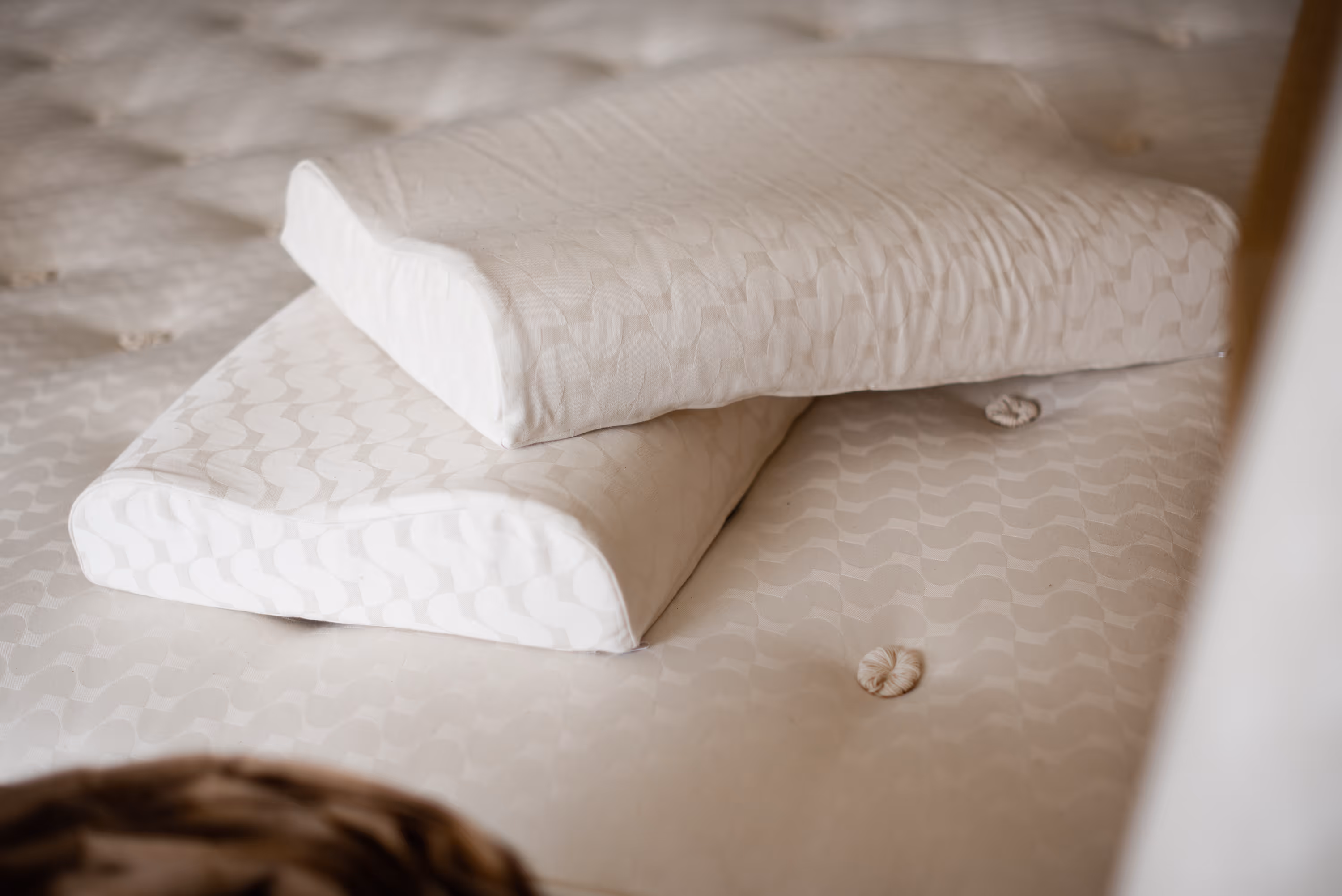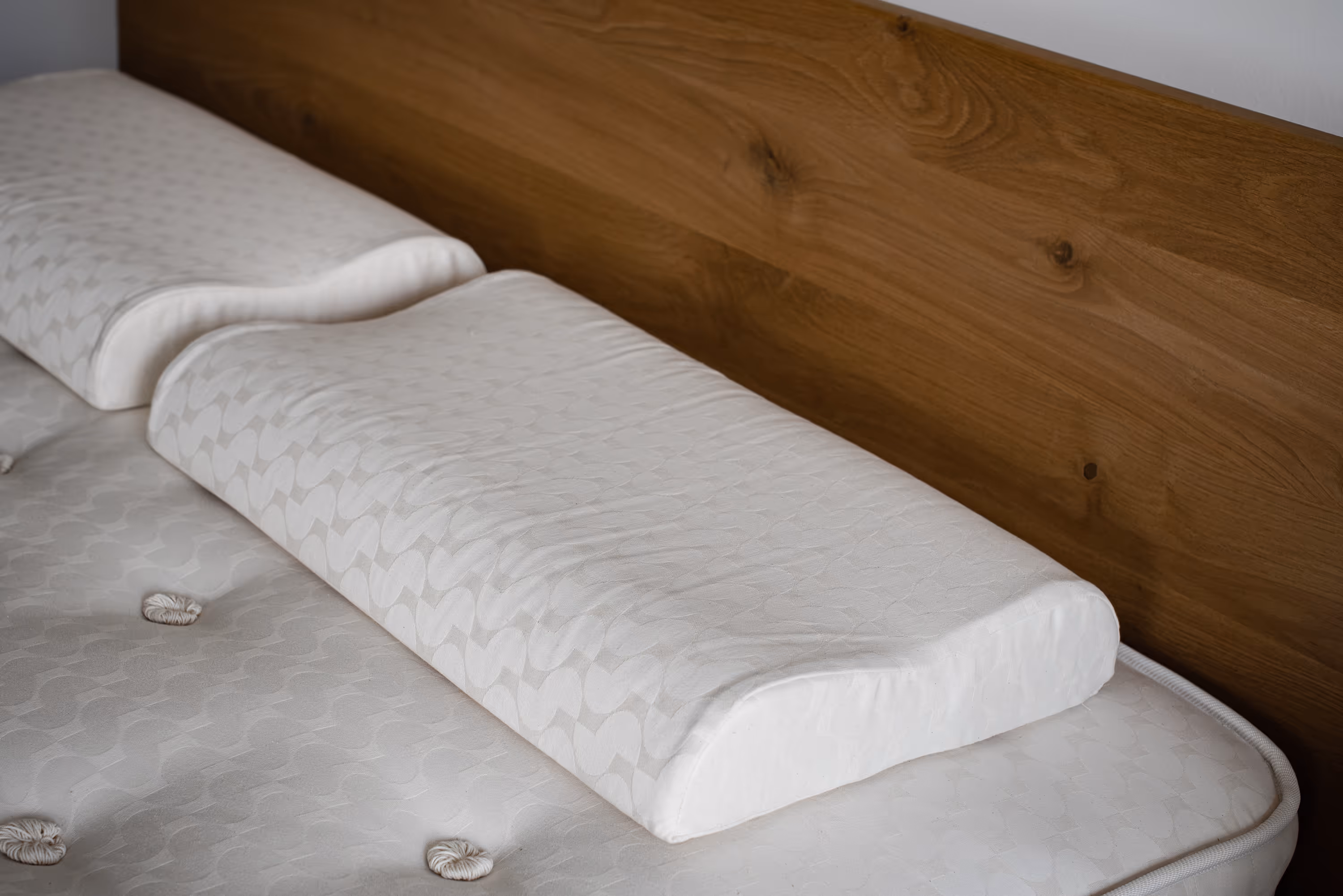 I cuscini sono in lattice e si adattano perfettamente alla forma del capo e del collo, favorendo un corretto allineamento della colonna vertebrale.