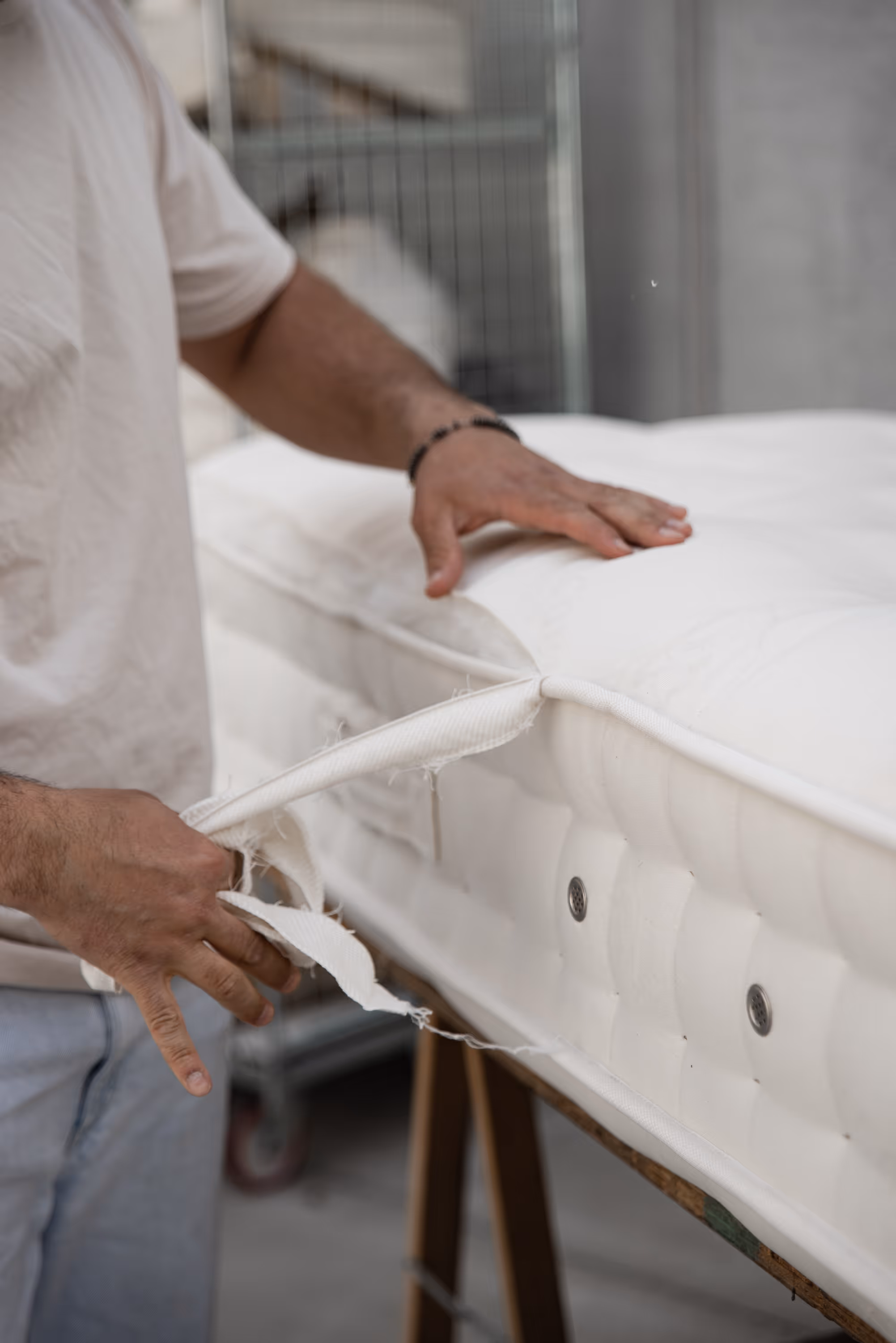 Non vengono utilizzate colle, o altri sistemi di ancoraggio, per la realizzazione degli strati per rendere possibile il disassemblaggio e quindi il riciclo. Inoltre, per poter garantire la massima durata del materasso, non abbiamo inserito all’interno alcun tipo di schiumato, tantomeno il lattice.