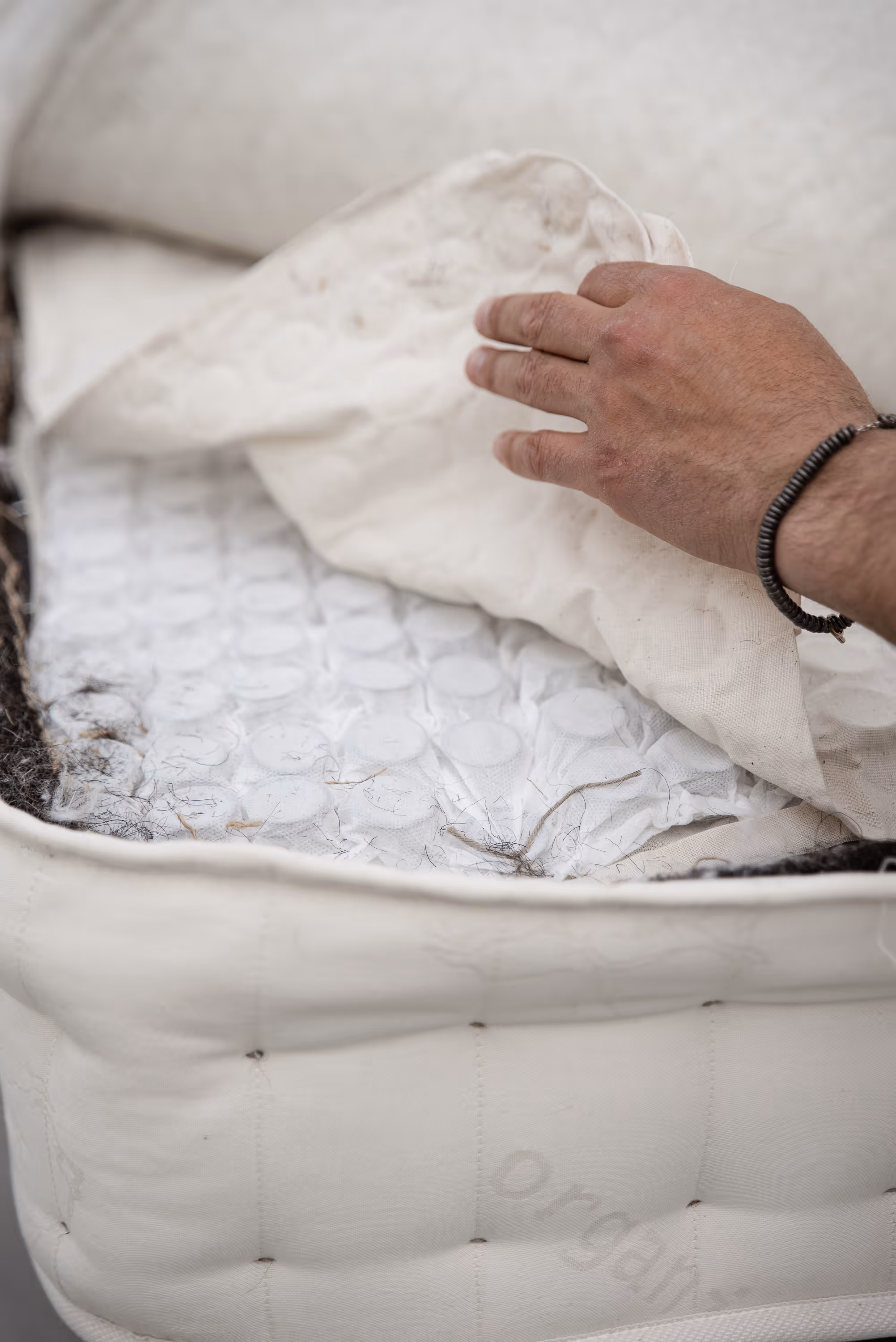 Rimasto solo il molleggio indipendente questo viene restituito al fornitore per il riciclo completo del materasso.